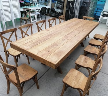En Mobiliario de Occidente, celebramos la nobleza de la madera. Nuestra línea de carpintería está pensada para crear atmósferas acogedoras y llenas de encanto, ideales para bodas en jardín, viñedos y eventos con alma boho-chic.