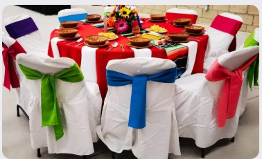 Nuestra colección fusiona calidad y estética: desde la delicadeza de nuestras sillas de diseño (Tiffany, Versalles, Cross back) y la calidez de nuestras mesas de madera, hasta la suavidad de nuestra mantelería fina. Ofrecemos piezas que aportan equilibrio, confort y un estilo inconfundible a bodas, banquetes y celebraciones íntimas. Calidad que inspira, enviada con cuidado a cualquier parte de México.