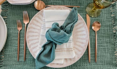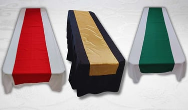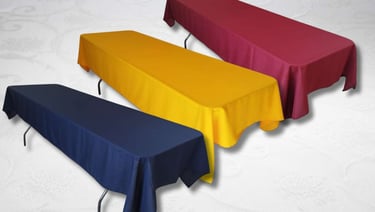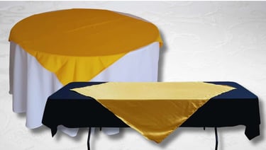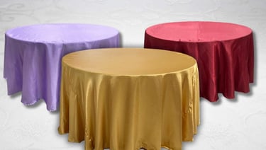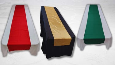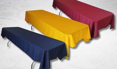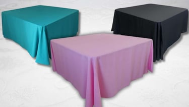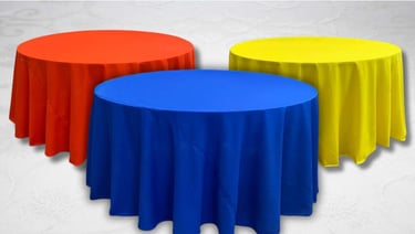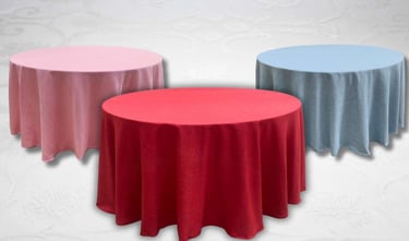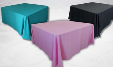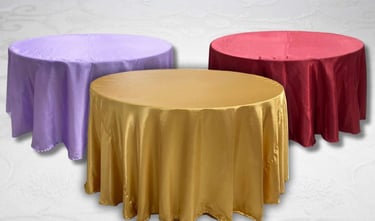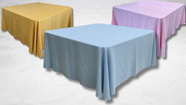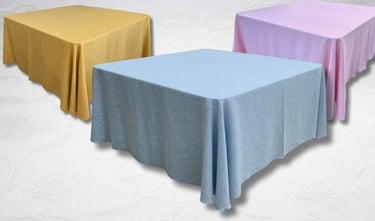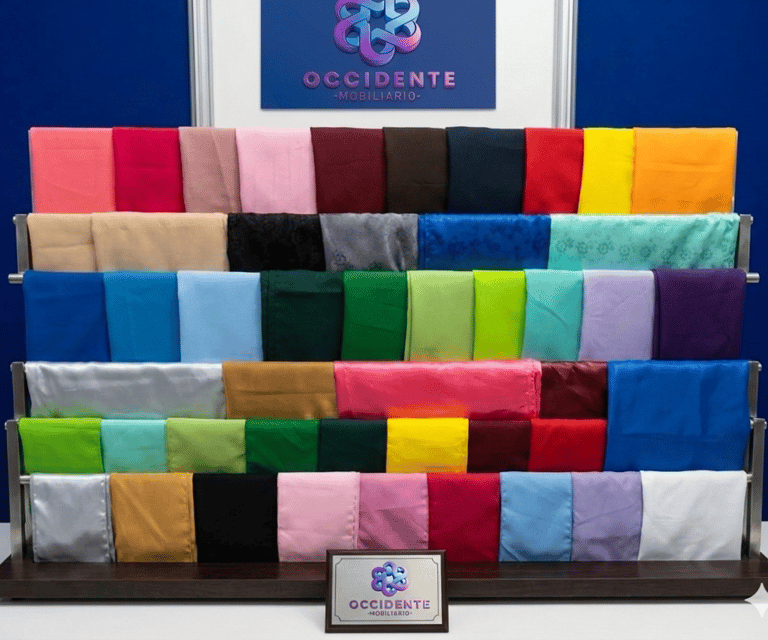 Nuestra variedad de telas y colores es incomparable. Tal como ilustra nuestro exhibidor de muestras, disponemos de un arcoíris de opciones: desde tonos vibrantes como el fucsia, verde limón y turquesa para fiestas llenas de energía, hasta colores sobrios y elegantes como el azul marino, vino, oro y plata para galas sofisticadas. Explora texturas lisas, acabados satinados brillantes o sutiles patrones para encontrar la combinación perfecta de manteles, caminos de mesa, cubre manteles y servilletas.